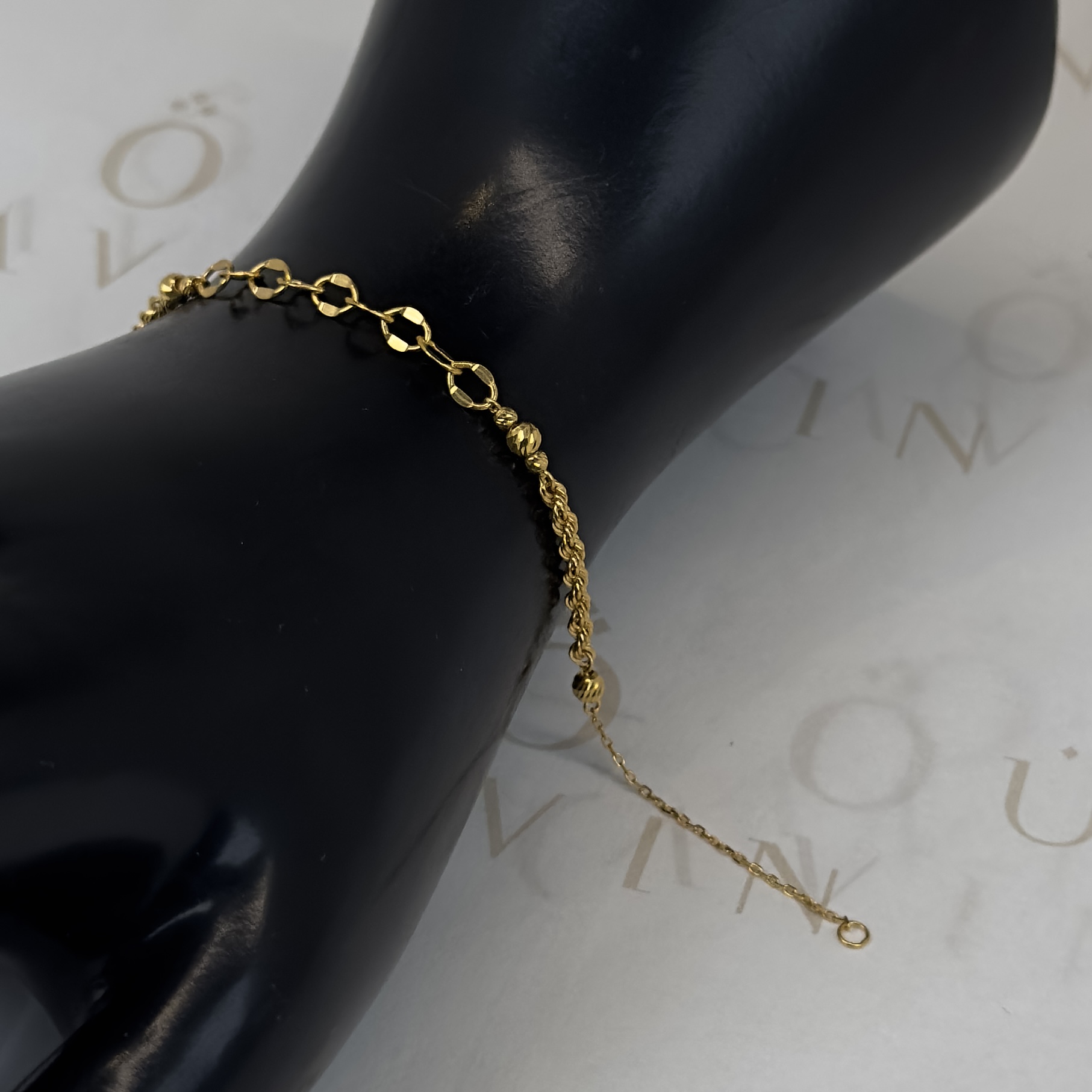 إحساسك أول ما تلبسينه؟ كأنك لابسة أناقة مصاغة بعناية. السوار يلف يدك بتفاصيل ذهبية ناعمة، تعكس الضوء وتخطف الأنظار… قطعة تحكي عن ذوقك بدون ما تتكلمين.
