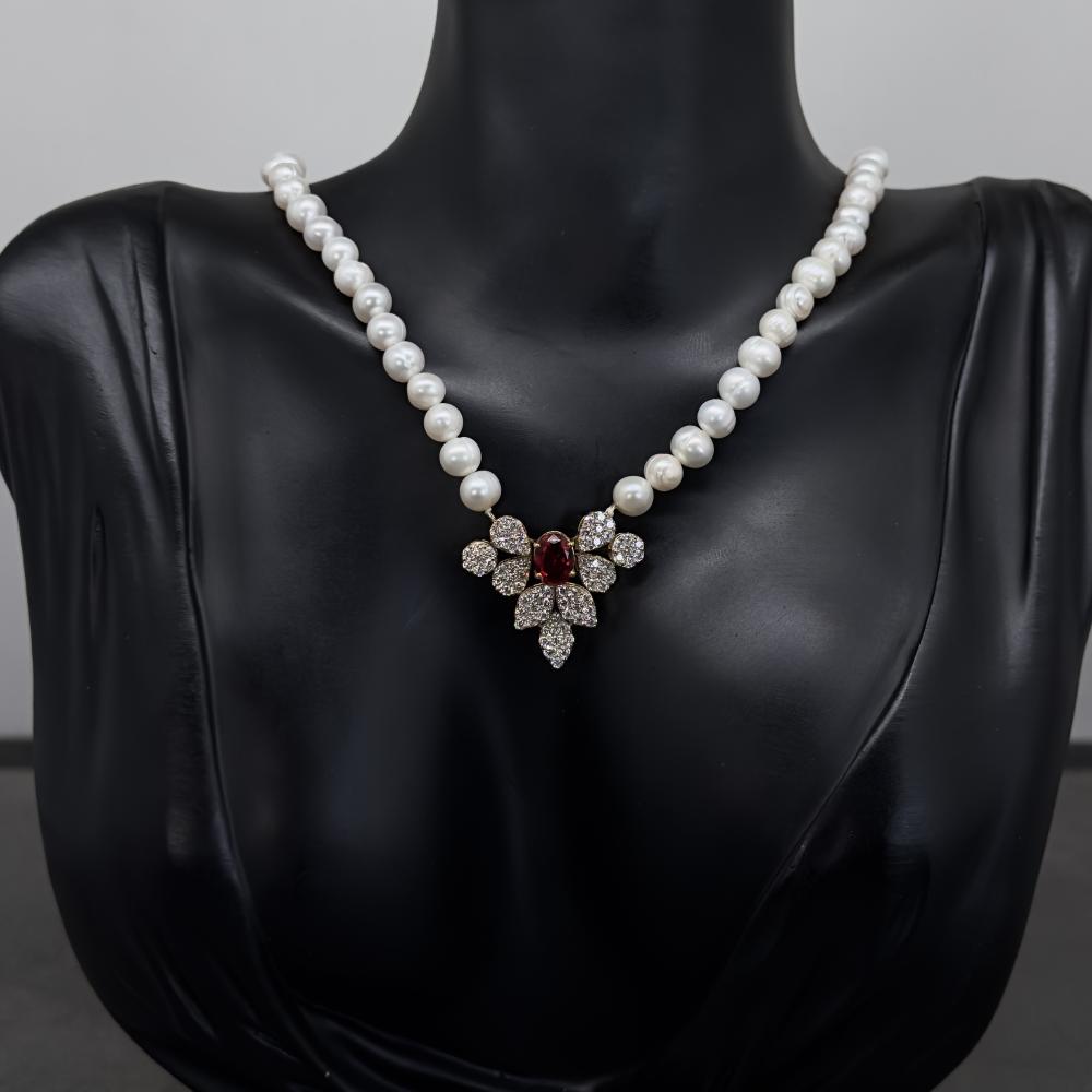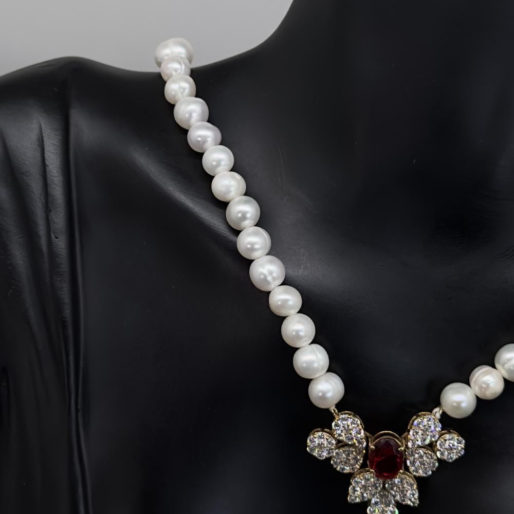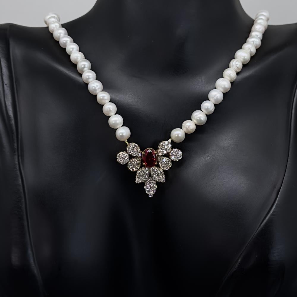 عقد بلون الأحمر: اشعر بالدفء والتألق مع عقد اللؤلؤ الزراعي المزود بحجر الزركون الأحمر اللامع. قطعة تلفت الأنظار وتضفي لمسة رومانسية خاصة، مدعومة بضمان مدى الحياة.
